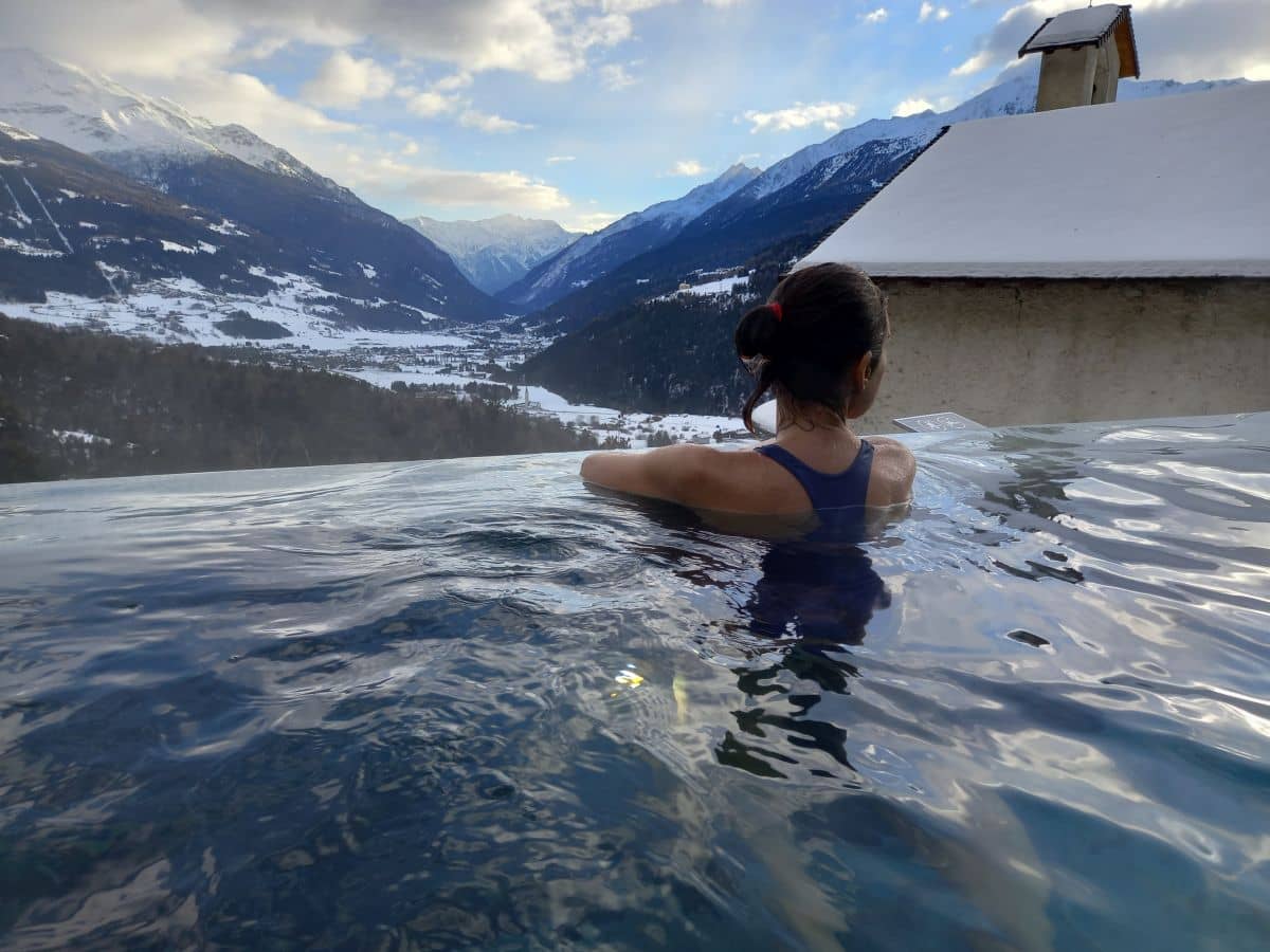 Quando la cura del corpo si sposa con la cura della mente. Attimi di riflessione in solitaria circondata dal silenzio della montagna e da un caldo abbraccio dell’acqua termale